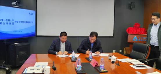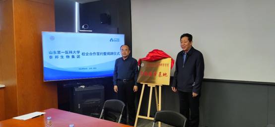 mk体育经理郝岗平与泰邦生物副总裁庞广礼签署合作协议,刘传勇与庞广礼共同为实践教学基地揭牌。