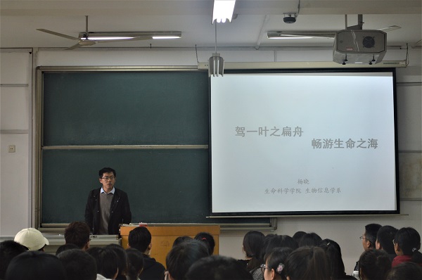 仪式结束后,杨晓博士为协会成员作“驾一叶之扁舟,畅游生命之海”学术报告,使成员们对协会及生物信息专业进一步了解和接受。