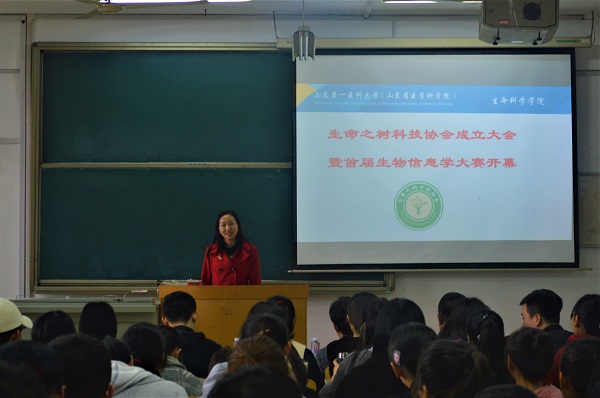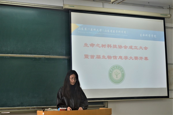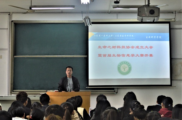 为贯彻公司“一专业一特色,一专业一协会”的发展理念,11月1日下午,生科院于教学南楼C2003举办生命之树科技协会成立大会暨首届生物信息学大赛开幕式,校团委孙琳婧、生科院经理张忠、生物信息学指导老师苗增民、杨晓、团总支刘兆玺、辅导员卢静以及协会全体成员参加了本次大会。会议由刘兆玺主持。