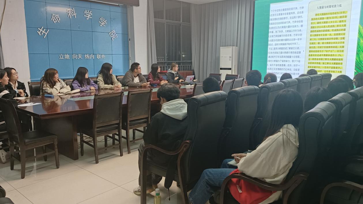 会议尹始,先由大家熟知的熊猫花花和福宝作为话题引入,让员工们在毛色、皮肤等一般形态特征方面上对大熊猫有所了解。此外,大熊猫具有独特的生活习性,喜独居,会以气味标记作为特殊的交流方式。随后在讲解中提到大熊猫属食肉目,并引用文献说明其食性的转变的是由于调控其喜欢吃肉的T1R1基因在进化过程中发生突变。活动最后,同学们积极表达自己的观点,并提出相关的建议。庞宏燕对本次会议进行总结,提出对本学期的工作规划。