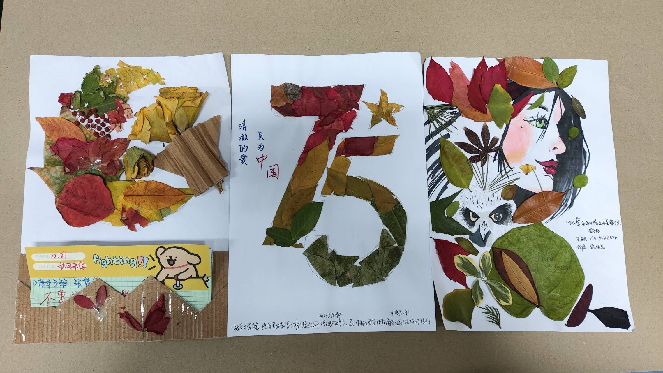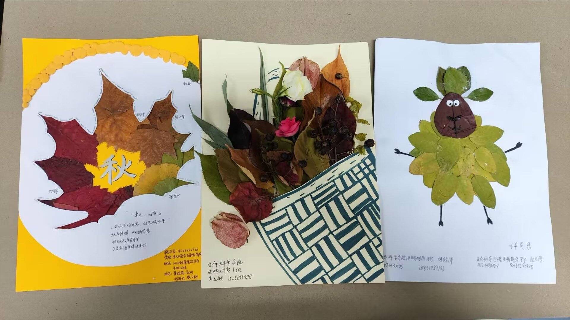 其中,一等奖《小羊肖恩》以绿叶为主体,通过拼接和粘贴,一只惟妙惟肖的小羊跃然纸上,体现出了树叶的活力。
