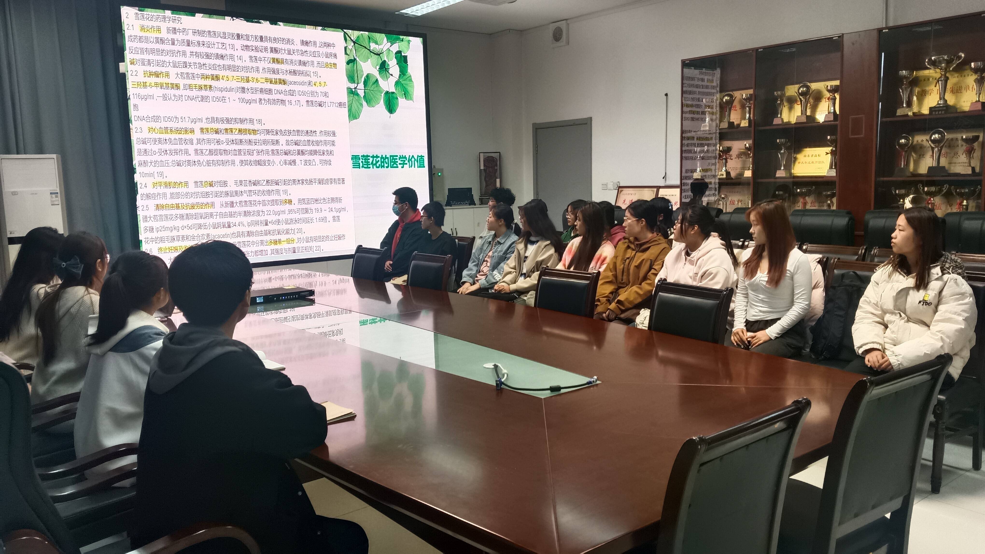 活动中,主讲人首先从大家所熟知的雪莲的生态习性和观赏价值入手,阐述其耐严寒特性以及其独特的形态与花色,将同学们引入雪莲的世界。随着主讲人的讲解,同学们进一步学习了隐藏在雪莲美貌背后更为丰富的药用价值,了解到它给现代多种疾病药物的研发注入了希望,在当代疾病治疗中发挥着举足轻重的作用。最后,主讲人就雪莲的价值发起了对其未来发展的讨论,在从雪莲的研究与保护、产业升级与可持续发展和社会认知三个角度给出一些切实的建议之后,鼓励同学们踊跃发言,积极表达自己的想法。
