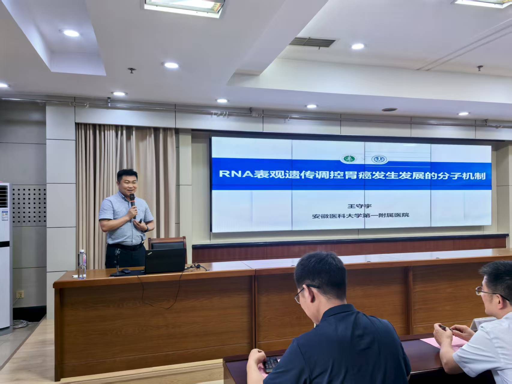 在学术报告环节,复旦大学的周兆才教授、南京医科大学的靳光付教授以及安徽医科大学第一附属医院的王守宇教授分别围绕胃癌发生演化的分子细胞机制、胃癌风险评估与精准防筛、RNA 表观遗传调控胃癌发生发展的作用机制等主题做了精彩分享。