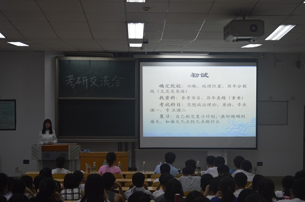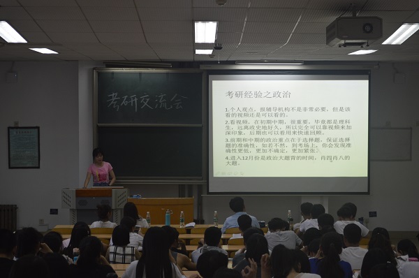 交流会中,苏晓岚等人首先从就为什么要考研以及如何考研等问题向大家做了详细讲解。同时,他们向同学们传授了自己亲身体会过的宝贵经验,还与同学们一起分析了面试中的相关技巧。并告诉大家:考研一方面是为了更好地就业,另一方面是为自己今后发展打下基础。对于如何考研,学长学姐们分别从专业、英语、政治三方面分析。专业复习上,要依据考试大纲;英语方面,重在练习,多动脑、勤动手;政治方面,大纲很重要,同时也要注意答题时的条理。考研的成功等于正确的方法加上不懈的努力以及准确搜集考研信息。