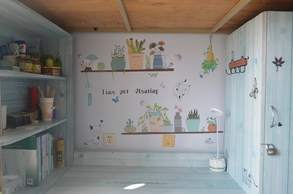 本次大赛中,同学们将创新与实践相结合,展示出了不凡的动手能力。精美多彩的饰品、美丽别致的壁画,将各个宿舍装扮得或温馨典雅、或清丽不俗,成为一道道各具特色的风景线。经过现场评选,桃园A112、A114和樱花园A322获得优秀宿舍奖,桃园A102和樱花园A502获得最佳创意奖,樱花园A422获得环保先锋奖。