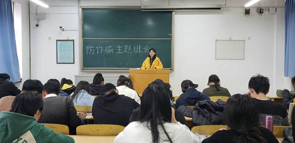 在班会中,班委们首先向同学们详细介绍了电信诈骗的类型、方式以及非法分子常用的手段,并借助自身经历列举了同学们有可能遇到的骗局,及相应的防范手段。随后,班委们通过分析近期网络上的一些实例,为同学们讲解了相关法律方面的知识,并推荐了有关题材的书籍以及影视作品,强调了此次班会的主题。