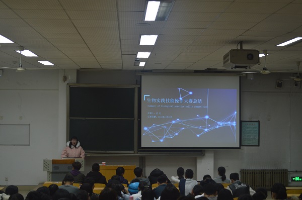 首先由第六届山东省老员工医药生物技术实验技能大赛获奖同学进行发言,张家昌总结并阐述了这两项比赛举办的意义以及参与赛事带给自身的益处,并鼓励同学们勇于尝试、积极报名。随后,徐皓向大家介绍了参赛流程和细节,同时提倡同学们提升自我创新意识。范琳璇就此次实验技能大赛赛制及注意事项做了详细分析,并表达了参与比赛的欣喜心情。付炎向大家介绍了她的参赛项目和实验操作结果,并感谢老师们的辛勤指导和默默帮助。田文豪对比赛步骤及参赛要求做了总结,也阐述了一些赛前要做的准备。陆云彪与大家交流了实验操作和笔试的具体内容及要求,希望同学们可以认真积极地对待各项比赛。森丽华总结了自己的参赛步骤与答辩技巧,分享了参赛感受。张孟、刘锐和姜恩德分别介绍了自己的创新项目,分享了最初创业营销的思路和策略。最后,参加山东省老员工生物学大赛的杜鑫和刘万才向大家讲述了生物学大赛的举办背景、参赛项目和参赛历程感受,并深切希望同学们能够克服困难、踊跃参赛。