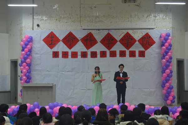 本次晚会在郭莹、高睿带来的开场舞《Boom boom》中拉开序幕。随后的参赛节目内容丰富多彩,由宋安、沈棋栋等人分别表演的小品《健忘村》和《暗恋》凭借高超的演技及幽默的语言,赢得了观众的阵阵掌声。由王晓英、郭彦廷等人带来的相声《满腹经纶》和《健康养成计划》,用夸张的诙谐表现和喜闻乐见的日常故事,将比赛推向高潮。此外,分别由主父鹏兴、门辰阳和曹其航等人带来的小品《你的模样》、相声《磨蔓》以及评书《皮裤胡同凶杀奇案》凭借独特的表演形式让人耳目一新,活跃了现场气氛。比赛过程中,陈心颖和孙磊带来了精心准备的歌曲串烧《下一秒》和《一次就好》,为参赛选手加油。最后,晚会在齐浩翔同学带来的萨克斯独奏《天空之城》中落下了帷幕。整场比赛高潮迭起、掌声不断,选手们的精彩表演吸引着全场每一位观众的目光。经过评选,小品《健忘村》和《暗恋》获得一等奖,相声《满腹经纶》和《健康养成计划》获得二等奖,小品《你的模样》、相声《磨蔓》以及评书《皮裤胡同凶杀奇案》获得三等奖。