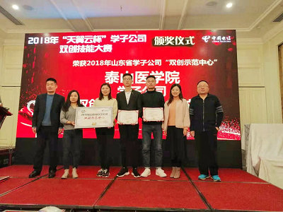 12月8日至9日,山东省2018年“天翼云杯”学子公司双创技能大赛在青岛黄岛区举行。来自省内16个地级市120多支高校队伍从11月份开始报名,经初赛、复赛,决出19支队伍参与比赛,“泰山医公司学子公司”进入山东省决赛。2016级生物技术本科1班张续任泰山医公司学子公司总经理。