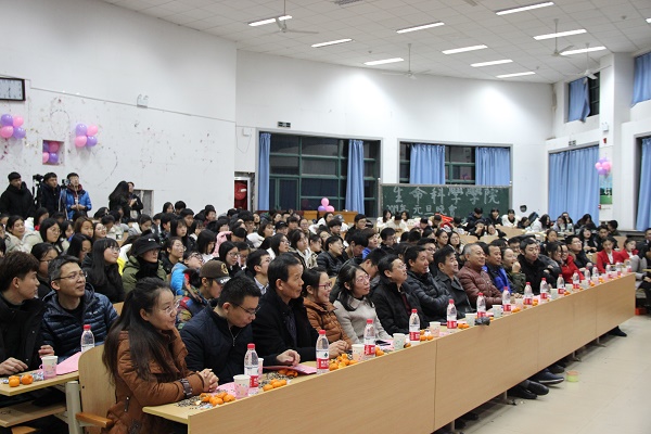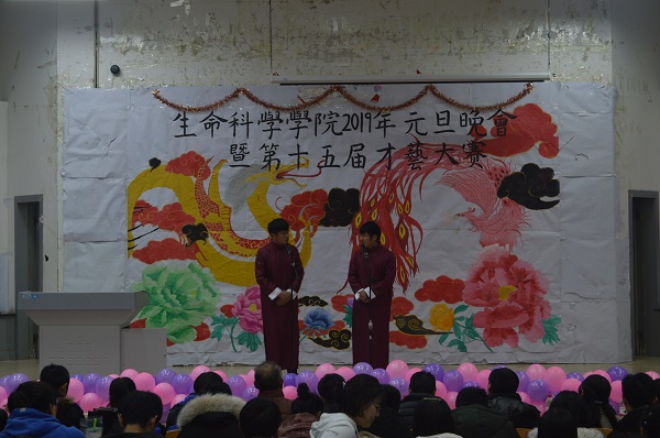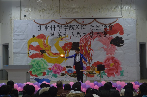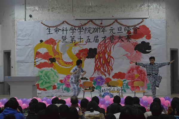 晚会在激情的开场舞中拉开序幕。首先,张忠经理致新年贺词,他用朴实诙谐的语言总结今年工作的同时,对全体师生带来新年美好祝愿。随后,李志强和张月健同学用相声《我是谁》点明每个人都要有自己的责任与担当,引发了同学们的思考。沈琪栋同学带来的歌曲《异乡人》用真情的演唱表现出人们藏在内心的深沉乡思,也让同学们懂得更加珍惜陪伴在我们身边的人。张玖发、曹子恒等同学针对当今社会中的炒作现象而创作的小品《疯狂炒作团》,在欢声笑语中揭露了盲目炒作带来的深远影响。接着,公彦智等同学带来的小人舞《威廉小鬼》生动可爱,让同学们眼前一亮。张帅同学的魔术表演《我是预言家》,更是使同学们感到神奇与惊喜。随后,王义章等同学演绎的小品《都是神经病》,让大家在捧腹大笑中体验到了真真假假的人生百态。孙凡越等同学用手指舞《中国很赞》向改革开放致敬,表现出同学们内心浓烈的民族自豪感。校园十佳歌手王丰浩等同学带来的歌曲《光年之外》,让同学们在美妙的歌声中感受到相遇的缘分。最后,在合唱歌曲《相亲相爱》的歌声中,本次晚会落下帷幕。