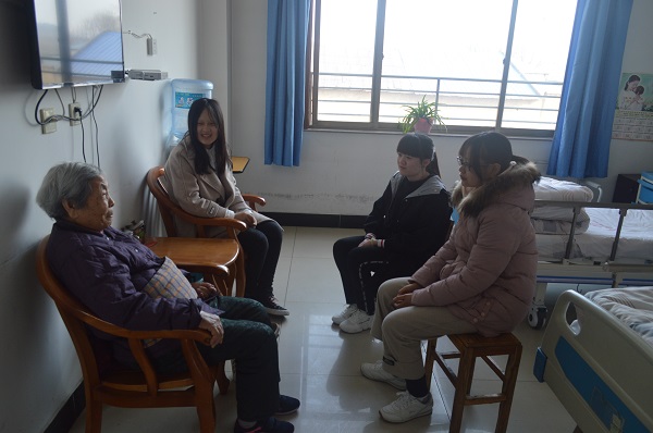 服务团成员带着满满的爱心和热情来到了护理院,受到了院内工作人员和老人们热烈的欢迎。志愿服务期间,成员们陪伴在老人们身边,聆听他们讲故事、诉嘱托,成员们从这些故事中深深感受到我们当今的幸福是来之不易的。接着,成员们也和老人们交流了自己学习的知识以及家乡的现代化建设情况,同学们纷纷表示要将老人们叮嘱的发奋学习、成为祖国栋梁的话语铭记在心。随后,成员们为老人打扫卫生、整理内务,同时他们还精心准备了生活日用品和小礼物,用生动的表演和歌声为老人们带去欢乐。