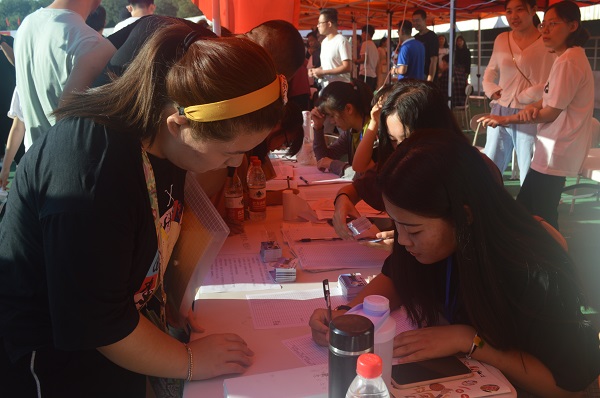 迎新活动开始,员工会成员们早早将迎新要用的资料、展板和物资等放置好,以饱满的热情接待每位前来报道的同学。在迎新活动期间,员工会成员们组成迎新志愿团队,积极为新生们答疑解惑,引导他们完成报道登记、资料核实、领取校园卡、办理入住等报道流程。成员们满腔热情,不仅认真回答新生及其家长们对专业方面的问题,还将自己的学习及工作经验分享给新生同学,为同学们提供参考,使同学们对老员工活更加充满期待。炎热的天气并没有使成员们懈怠自己的工作,在引导的同时也不忘帮助同学搬运行李。志愿团队成员以自己的实际行动欢迎每一位新生的到来,让刚踏入大公司园的新生们感受到了不一样的温暖。