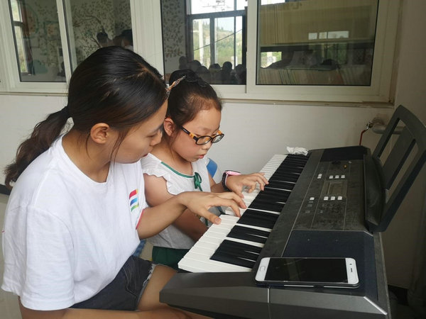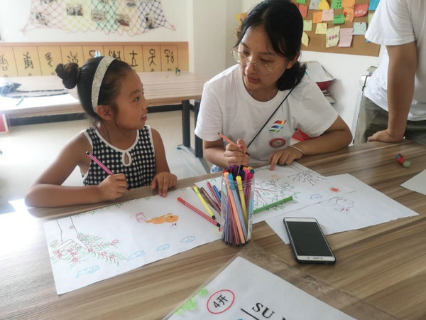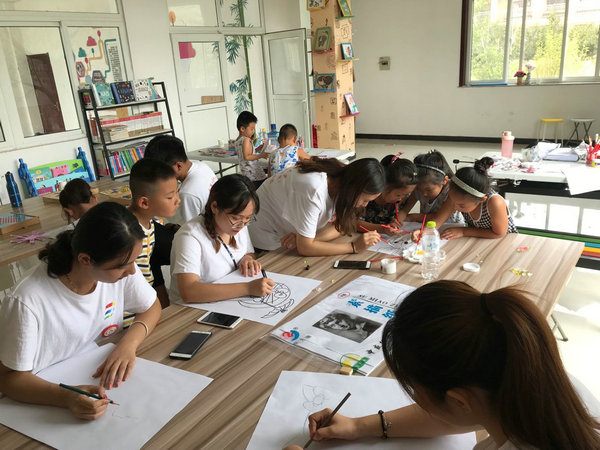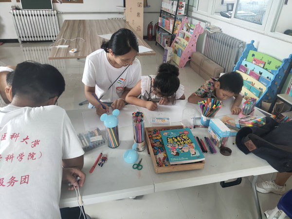 志愿服务团成员以“团队合作”小游戏,拉近了与儿童之家孩子们的距离,拉开了“七彩假期”暑期志愿服务活动的帷幕。在志愿服务期间,成员们在带给孩子们温暖的同时教给他们许多有趣的科学知识,用实际行动和所学知识回报社会。在音乐课堂上,由服务团成员伴奏,孩子们合唱歌曲《虫儿飞》等曲目赢来了阵阵掌声。在绘画课堂上,孩子们各显其能充分发挥想象力,与“小老师”们齐心合作绘制了许多动物画。通过对孩子们绘画成果展示,培养孩子们的相互欣赏能力,提升了自信心。