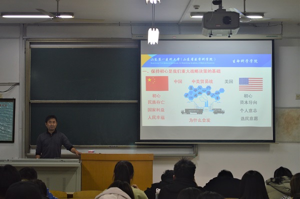 张忠从何为初心、战略意义、发展意义和初心于我四个方面展开讲解。首先,张忠经理从党的建设、历史任务、制度保证和价值取向等方面出发,结合历史,让同学们对初心的含义和意义有了更加深层的理解。紧接着,张忠经理联系实际,如中美贸易战、香港问题、国土争议和社会娱乐化等热点话题,教会同学们保持初心是国家战略决策和发展的基础。随后,他强调,我们必须通过保持初心来凝聚人心、保家卫国、面向未来。同时,张经理通过讲述毛主席的战略思维和习近平新时代中国特色社会主义思想教育同学们,青年时期应心系国家,通过提升自己综合素质为祖国建设添砖加瓦。最后,张忠经理用《少年中国说》寄托了对同学们的鼓励和期望,希望同学们不忘历史初心,牢记国家使命,做一名优秀的新时代青马老员工。