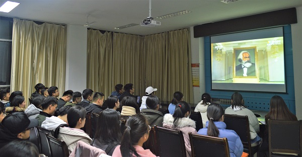 该影片以时间为线索,主要讲述了马克思对人类社会进步产生的重要影响及深远意义。影片高度还原历史,他追寻真理,不畏艰难,坚决与旧世界的反动势力做斗争,并为全世界无产阶级和被压迫民族谋求解放,创立了理论武器——马克思主义。观影过程中,全体同学专心致志,时而情绪激昂,时而神情凝重。同学们在马克思的生平事例中感受到了无产阶级革命的艰辛。影片结束,同学们依次发言,简要谈了观影感受和对马克思主义更深一步的理解。