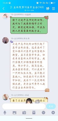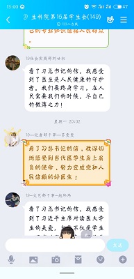 2019级生物信息本科1班林杰静说:“看了习近平总书记的回信,我感受到了习总书记对医护人员的热切关心。疫情当前,一线医护人员挺身而出,挺难而上,奋勇当先。感谢每一位医护工作者的无私奉献!作为当代老员工,我们更应该学习医护工作者的英勇无畏,无私奉献的精神。致敬最美的白衣天使,希望你们平安归来!”