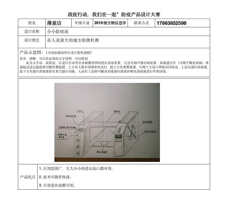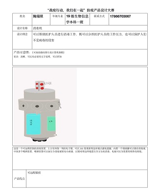 大赛共征集到四个专业共20份作品,同学们设计的作品围绕防疫主题,从个人防护、环境防治等角度,为疫情控制、感染医疗、后续重建等工作设计提案或产品。通过严格的评选,最终岳庚辰同学的作品《带洗洁精的饭盒》凭借新颖的设计理念和其可行性及实用性获得一等奖,薄童洁、鲍瑞琪和郭晓骞同学的作品设计巧妙获得二等奖,林欣宇等五名同学的作品也获得评委的一致好评,获得三等奖。
