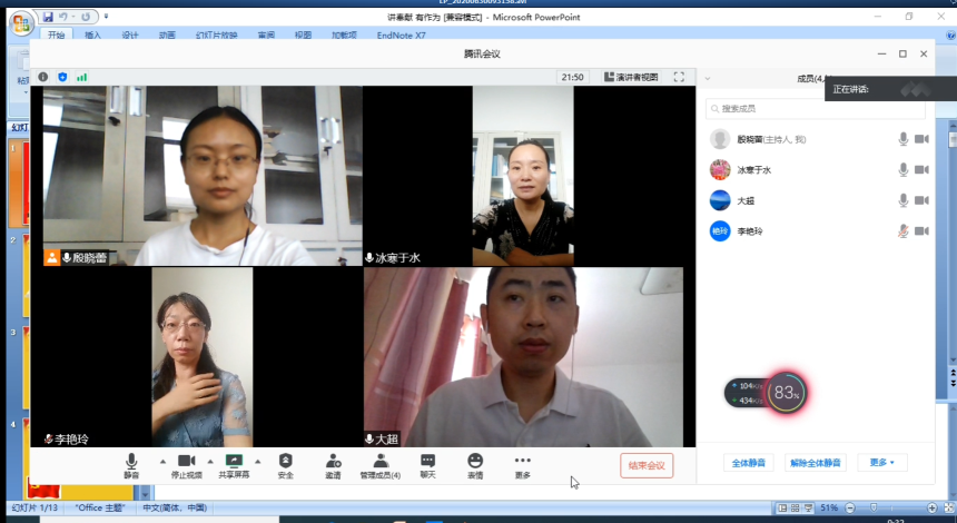 生物制药党支部书记殷晓蕾同志通过腾讯网络会议,以“讲奉献,有作为”为主题,带领每位党员再次重温相关政治理论知识,学习先进事例,深刻认识到要按照“四有好老师”的标准严格要求自己,用实际行动做一名合格党员。