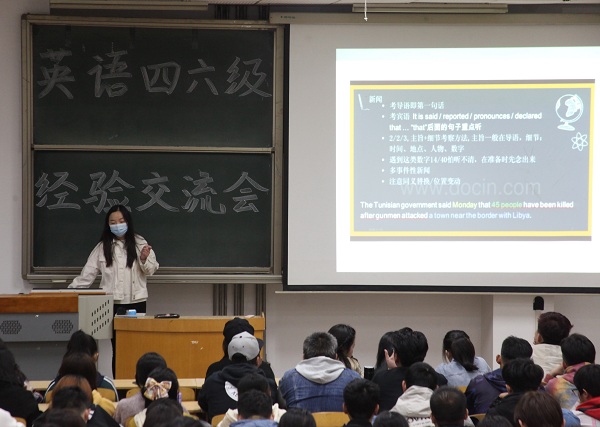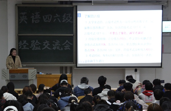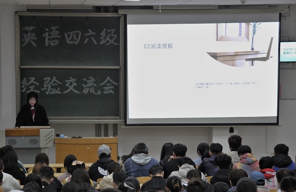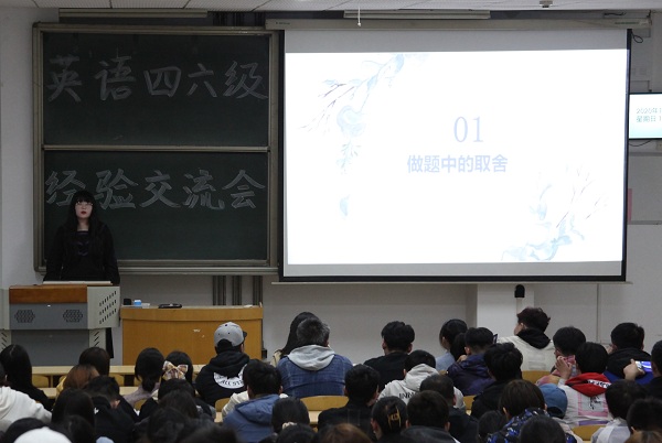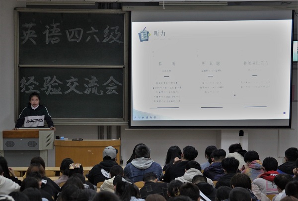 为了帮助同学们迎接即将到来的英语四、六级考试,增加同学们的考试信心,10月25日晚,mk体育在教学南楼C2001举办了英语四六级经验交流会。会议邀请了王淼、徐宇琛和于天姿等七位优秀员工代表上台进行经验总结,2019级全体同学参加此次交流会。