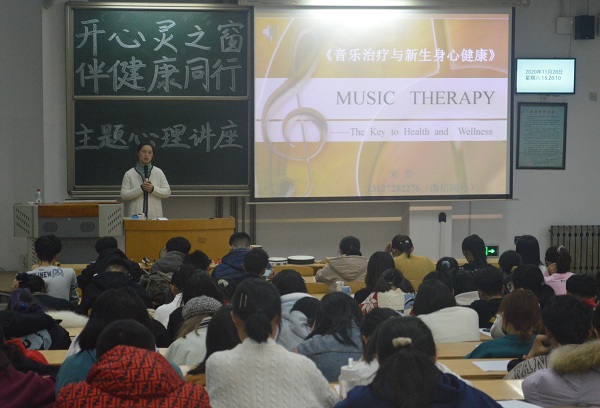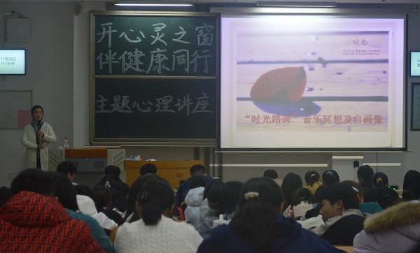 首先,宋老师通过让同学们积极主动上台演奏乐器的互动方式,向同学们展现了音乐如何传递情绪。随后,宋老师解释了情绪究竟是什么,并通过详实的例子,阐释了情绪如何影响同学们的生活。通过宋老师细致和耐心的讲述,同学们不仅体验了“音乐治疗”的方法,切身感受了音乐对于心理的治愈,更深刻认识到积极情绪的重要性。最后,宋老师用诙谐幽默的语言让同学们认识到,心理压力并不可怕,只要及时发现并及时调节,压力也会变成支持我们前进的动力,使同学们受益匪浅。