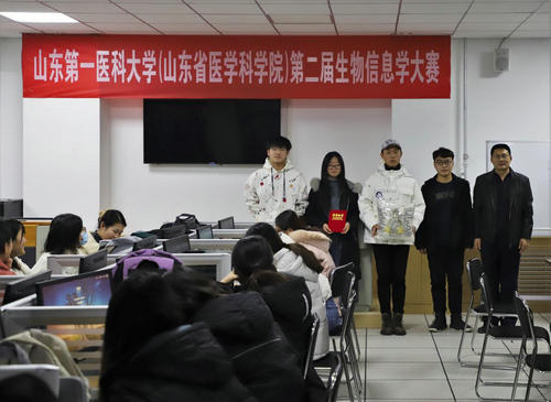 为促进公司生物信息学团队建设与人才培养,提高员工专业素质和能力。生科院于生物信息学实验室举办第二届生物信息学大赛。生命之树科技协会全体同学参加了此次比赛。生物信息学系高蕾、杨晓、姬敬开和李婷老师担任此次比赛评委。党总支书记曹斌为获奖选手颁奖。