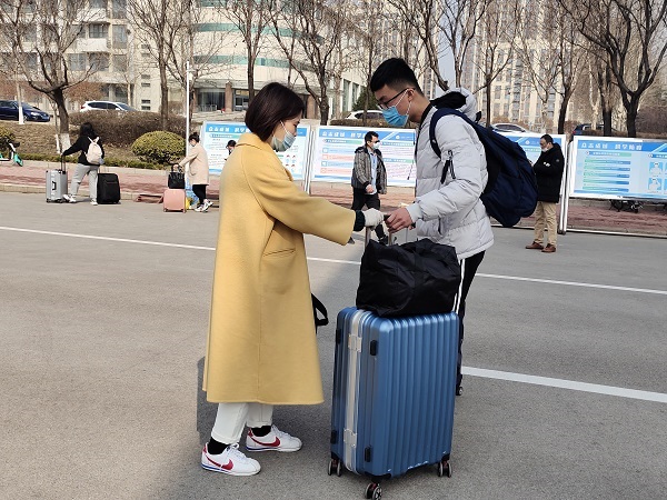 3月4日,mk体育迎来了2021年平安返校的莘莘学子。公司党总支副书记张岳、团总支书记刘兆玺、辅导员卢静到达校门口欢迎返校同学并帮助同学们顺利进入校园。