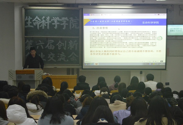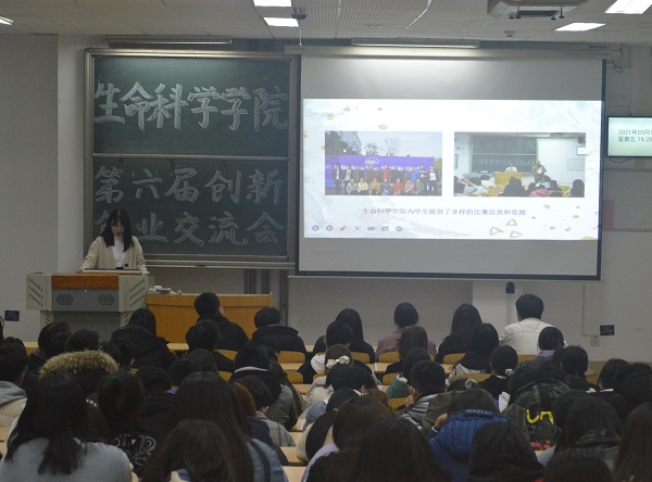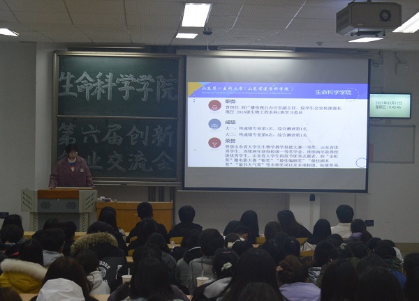 3月12日,生科院于教学南楼C2001举办第六届创新创业交流会。本次创新创业交流会邀请了生科院的优秀员工代表以及在省、国家级创新创业类大赛中取得优异成绩的同学来进行经验交流。2020级全体同学参加了此次会议。