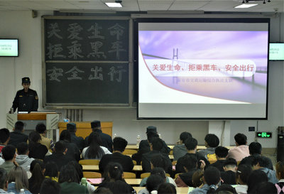 许海波大队长为广大同学做了“关爱生命,拒乘黑车,安全出行”的讲座,通过讲座,同学们了解了相关的法律法规,知道了黑车的特性和危害,他通过大量真实案例指导大家学会如何去防范黑车,真正做到远离黑车,珍爱生命。
