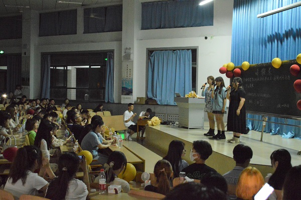 晚会在覃稆葳、李梦瑶等同学带来的开场舞《love sick girls》中拉开帷幕,随后由韩晓环和殷于鑫珂同学带来的《日不落》以令人耳目一新的风格掀起一片高潮;闫雯慧、姚艺璇同学带来的相声《我的老员工活》引得大家捧腹大笑,给大家带来了欢声笑语;由2021届毕业生代表孙磊带来的歌曲《慢慢》透露出浓浓的离别愁绪与难忘的校园记忆,离别之情、感恩之情相互交织,深深触动着现场观众的心。麻小丽同学的舞蹈《匆匆那年》让观众在听觉和视觉的享受中体会到了舞蹈的神韵;毕文平和陈妍同学的朗诵《赠别》更是将大家带回了那年夏天,淡淡的离别,敲击着大家的心;歌曲《干杯》用轻快活泼的节奏与欢快的旋律碰撞出青春的活力,引发了在场同学的共鸣。张思伊等同学带来的《trumpets in the morning》展现了爵士舞的无限魅力,赢得了在座的激烈掌声;随后由张腾飞、李泽梅、卢延鹏等同学带来的《时间煮雨》让即将毕业的同学们思绪又回到了那个刚刚入学的夏天,仿佛一切都还在昨天,深深触动了大家。紧接着在同学们的热情邀请下,刘兆玺带来了歌曲《再见》,大家挥舞着手中的闪光灯,随着音乐的节奏打着节拍,与老师一块合唱;最后,晚会在由孙佳莹、王越、白昭慧三位同学带来的《北京东路的日子》中落下帷幕。在晚会过程中,2017届学子为老师们准备了有趣的小惊喜,展现了师生深深地情谊。