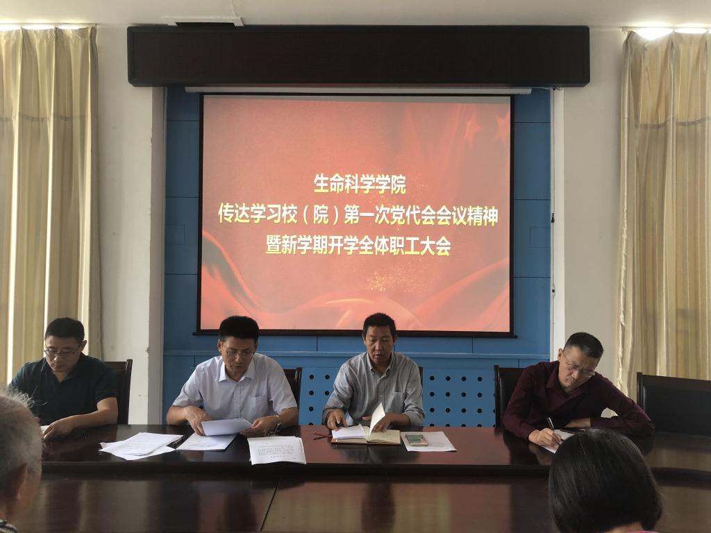 为深入学习贯彻中国共产党mkmksport(山东省医学科公司)第一次代表大会精神,9月3日上午,mk体育召开全体教职工会议,传达学习校(院)第一次党代会精神。党总支书记曹斌主持会议。