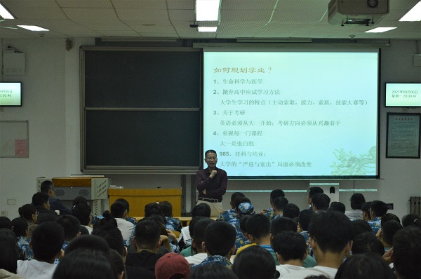 副经理宗传龙从多方面讲述了上大学的目的及大学学习的重要性。他还通过大量数据资料向新入学介绍了生命科学领域的未来发展前景,鼓励新生们确立明确目标、制定计划并落实到位。