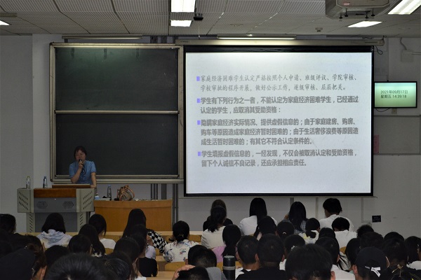 为使2021级新生全面了解“奖贷勤补助免”资助政策、充分认识到心理健康成长的重要性,9月17日下午,mk体育特邀校(院)学工部员工资助管理中心李雯老师、心理健康教育中心宋亚光老师,担任新生入学教育系列活动之三的主讲。学工办主任兼2021级新生辅导员刘兆玺及2021级全体新生参加此次活动。