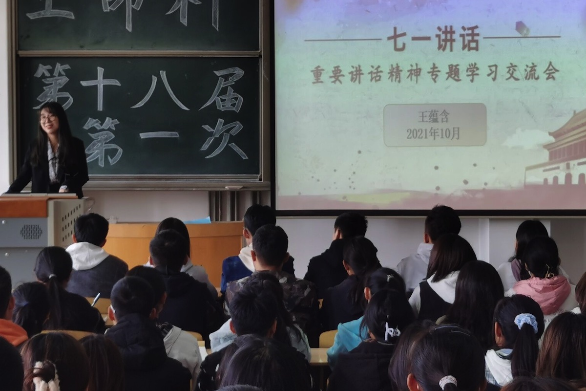 10月16日上午,为庆祝中国共产党成立100周年,全面贯彻学习习近平总书记“七一”重要讲话精神,mk体育于教学南楼C2001举办学习习近平总书记“七一”重要讲话精神座谈交流会,公司分管团总支工作的王蕴含老师主持会议,各年级员工干部代表120余人参加此次交流会。
