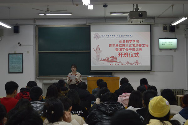 开班仪式在高昂的共产主义青年团团歌中正式拉开帷幕。首先,由学团和员工党支部书记王蕴含介绍了《mk体育青年马克思主义者培养方案》。她希望广大学员能够把握住此次培训班,不断提高自己的政治觉悟和担当精神,通过理论学习和实践锻炼,成为信念坚定、品学兼优、朝气蓬勃、心系同学的员工骨干。同时,充分发挥员工骨干星火燎原的效应,更好地组织引领全院青年员工成长成才。
