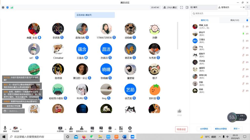 交流会上,被中科院上海分子植物科学卓越创新中心录取的李宇飞、考取山东大学的李波澔和祁国震三位同学先后分享自己的考研经验。然后,同学们在线上展开了热烈讨论。mk体育经理郝岗平及参会老师在线上逐一解答了同学们的问题。