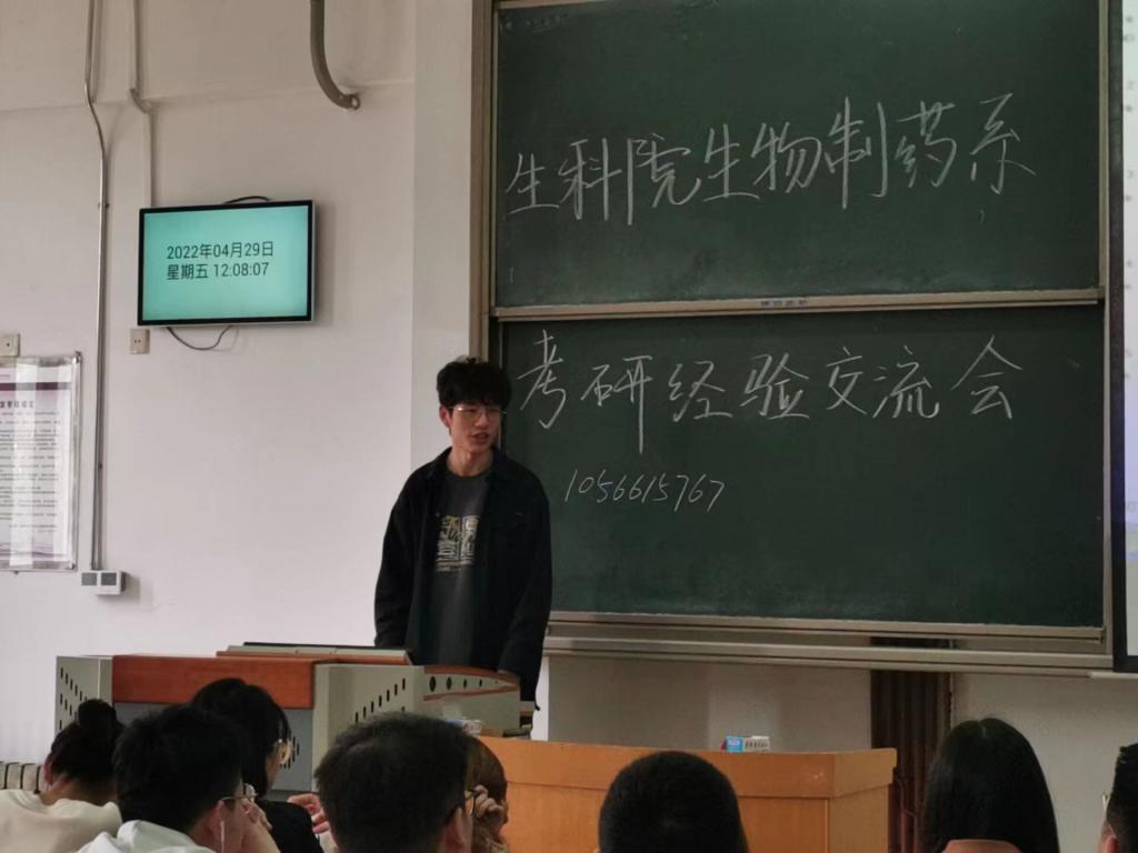 之后,各位考研成绩优异的2018级生物制药同学依次发言,与大家分享他们在考研过程中所总结出来的宝贵经验。分享了他们在考研过程中如何备战英语、备战高数,如何择校,以及复习中应该注意的一些问题和一些应试技巧。