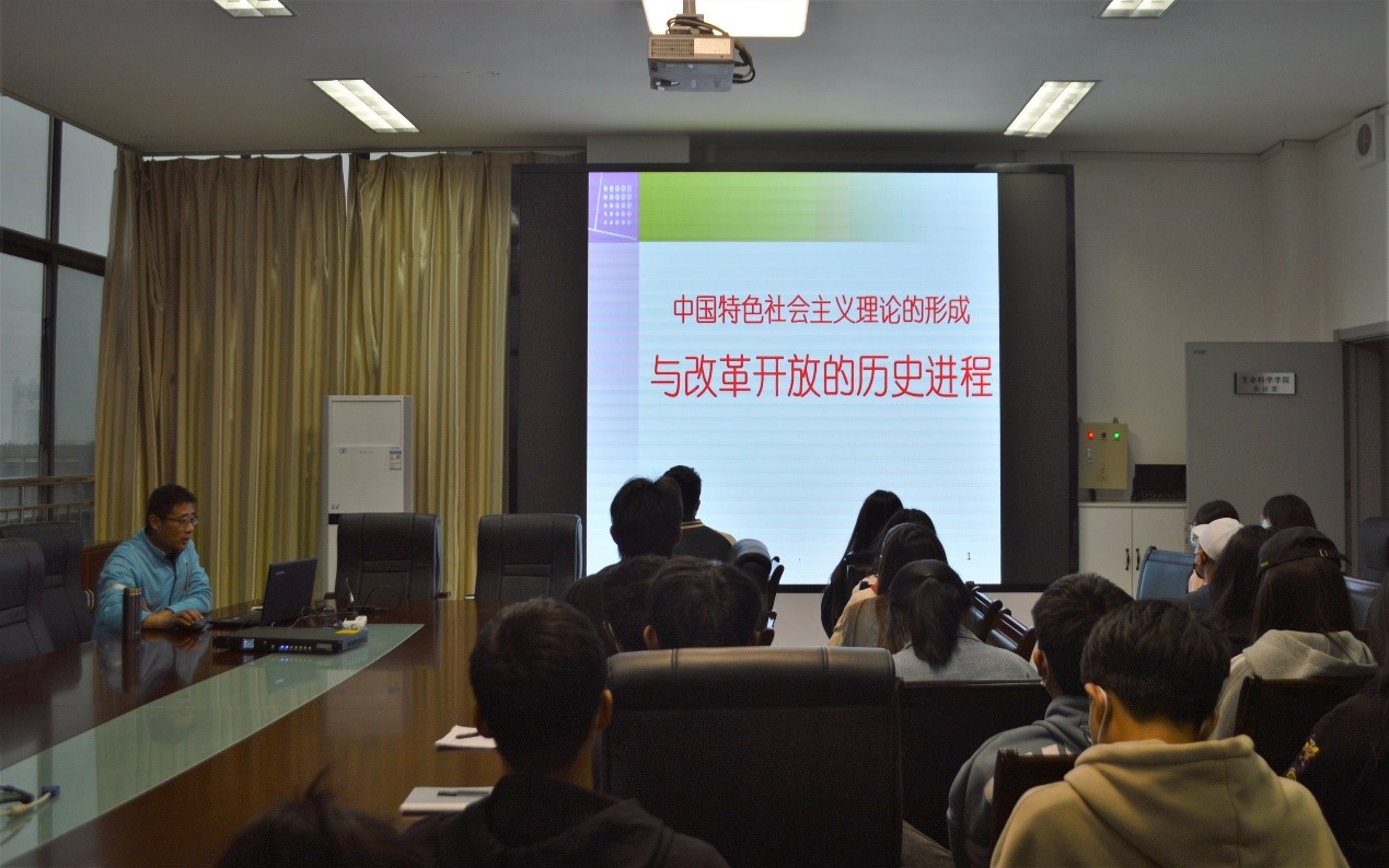 张岳同志讲述题为“中国特色社会主义理论的形成与改革开放的历史进程”的党课。他结合自身经历讲述了自改革开放以来党和国家发展的伟大历程,以图文并茂的形式讲述马克思主义中国化的成就和习近平新时代中国特色社会主义思想的内涵,要求同学们要提高思想政治水平,深入贯彻学习中国特色社会主义理论体系,做明大德、担大任的时代新人。