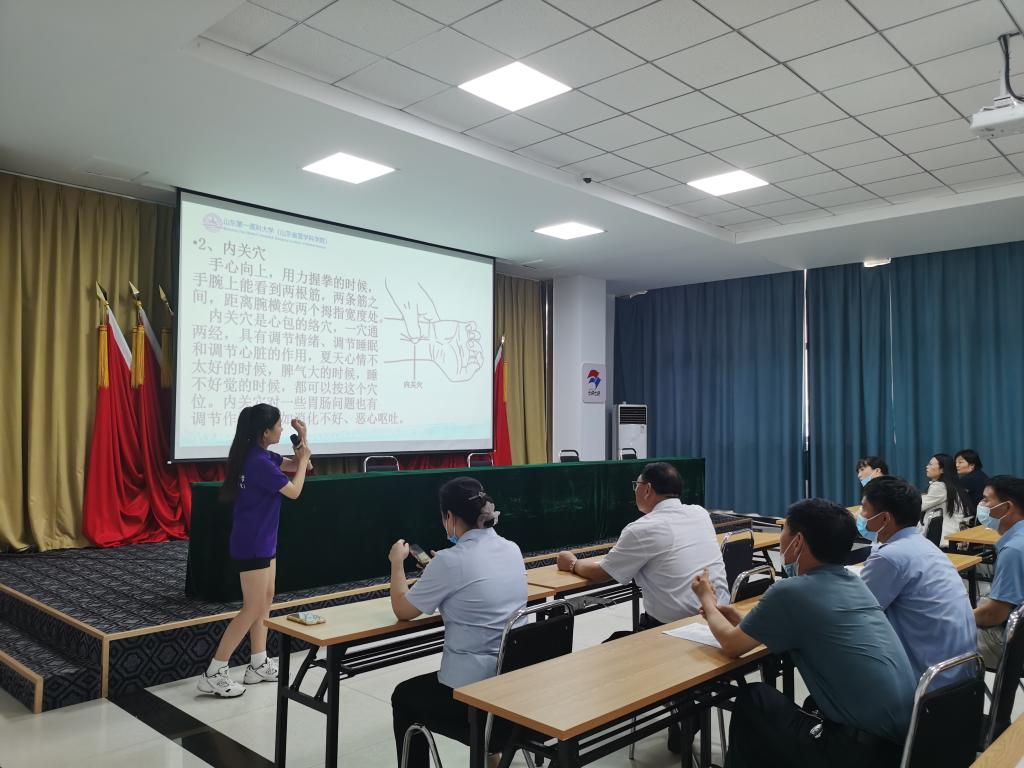 7月5日,团队来到了兰陵县代村,向村中老人进行了夏日养生、保健等知识的普及讲座。讲座既有对夏日养生药膳、呼吸吐纳法、常用保健穴位以及耳穴压豆等知识理论上的介绍,又有对常用保健穴位按摩手法的演示和耳穴压豆的操作,辅以提前制作好的图文并茂的讲义,加上良好地互动,让在座的老人真正有所收获,将科学的养生保健知识应用在生活中。