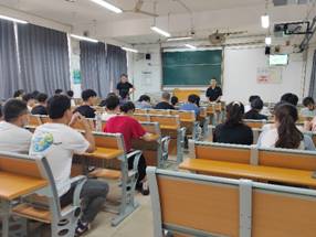 洒老师就“开学第一课”关于加强疫情防控、安全教育以及心理健康,实现新阶段学习生活目标的转变、自身身心健康安全责任的转变,养成乐观向上、自律自主的生活态度的相关内容进行了讲解。潘国军老师详细介绍了公司的研究生考试的相关政策、培养成果及就业发展方向等,提醒大家理性选择考研公司和专业,并从备考经验、考研率数据、考研培训班等方面提出了建议。
