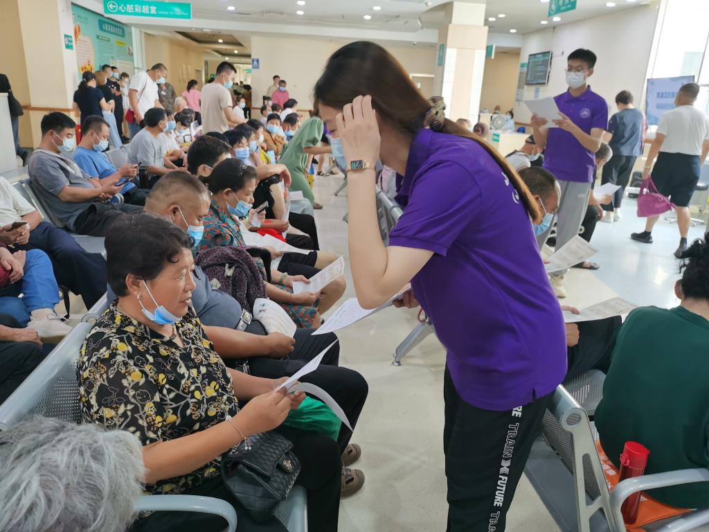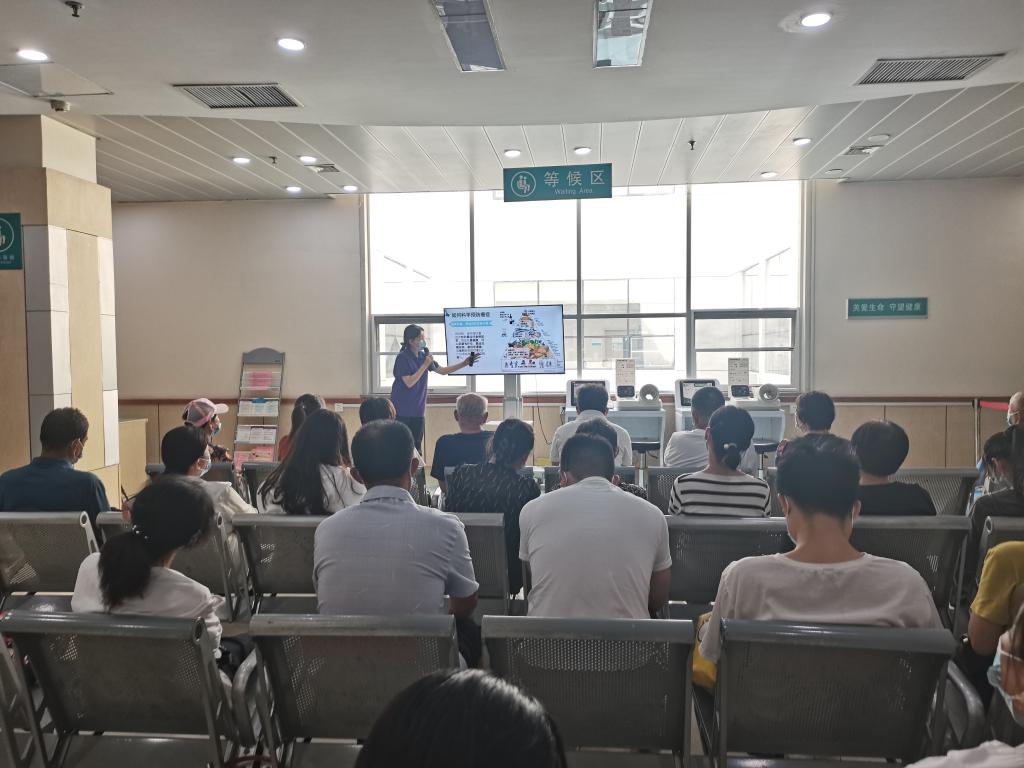 在宁养院宣讲活动结束后,志愿者团队又来到了聊城市人民医院门诊部候诊厅进行宣讲。在医护人员的指导下,此次宣讲顺利展开,在医院取得良好反响。宣讲结束后,志愿者团队分发了肿瘤预防小知识的传单,同时针对当下季节,分发了夏季养生食谱传单,让病患在酷暑中既能学到知识,也能收获养生。一上午的宣讲活动接近了尾声,病患及家属对肿瘤预防知识的充分汲取,让员工志愿者团们感受到了知识的力量以及,授之人以渔的快乐,这也更坚定了志愿者团队尽最大努力向大众普及肿瘤预防知识的决心。