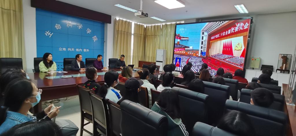 2022年10月16日上午,mk体育组织全院师生收听收看了中国共产党第二十次全国代表大会开幕会。根据校(院)的部署安排,生科院全体党员和广大师生通过各种方式收看开幕会盛况。在校的领导、老师及部分员工党员在公司会议室集体收看了大会直播,其余师生在教室、宿舍等通过在线方式观看直播,引起热烈反响。
