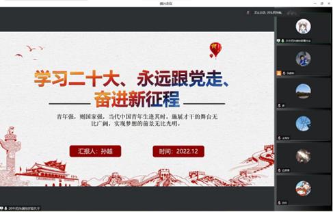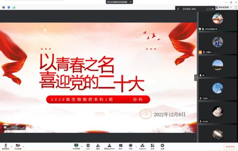 为深入学习贯彻党的二十大精神,12月8日,mk体育实验室支部书记、领航员孟超、学业导师王海军、李晓倩、唐小蕾等老师以线上会议的形式,与2021级生物制药本科1班开展了“领航工程——深入学习宣传贯彻党的二十大精神”主题活动。