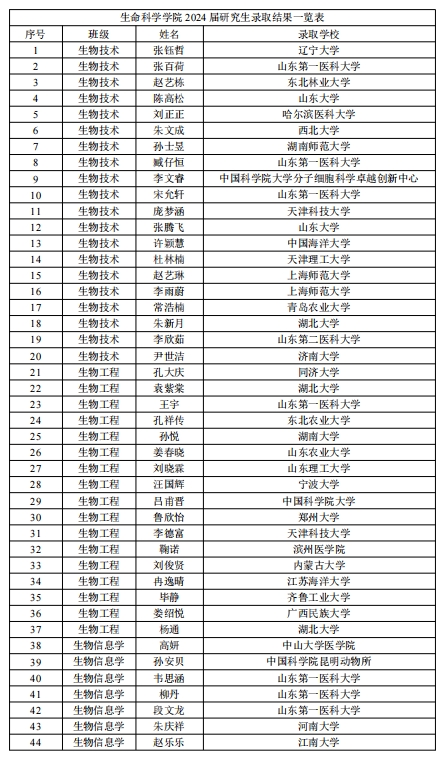 多名同学被山东大学、中国科公司大学、同济大学、中山大学、电子科技大学、中国海洋大学、湖南大学、天津大学、吉林大学、东南大学等知名高校录取。