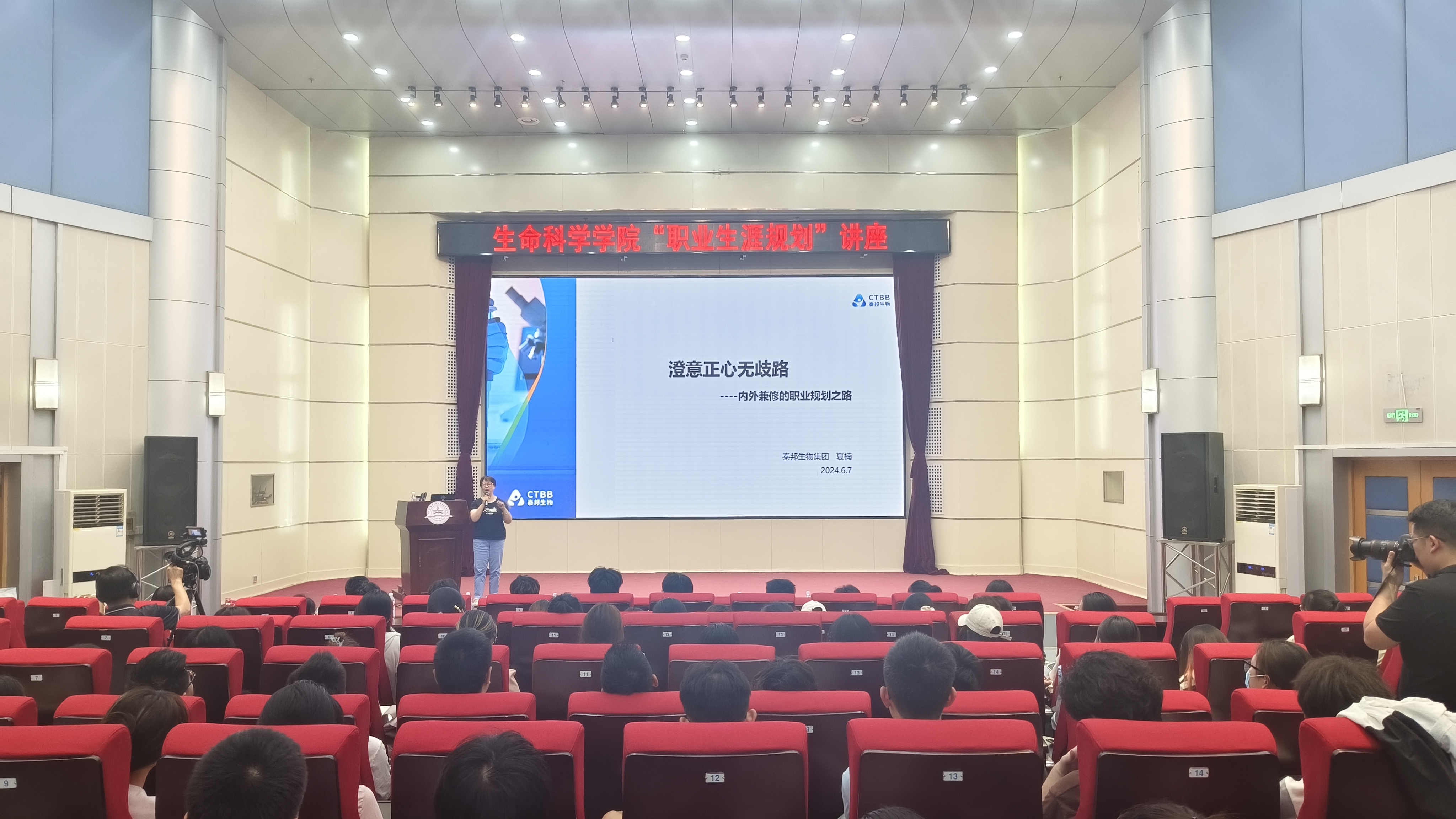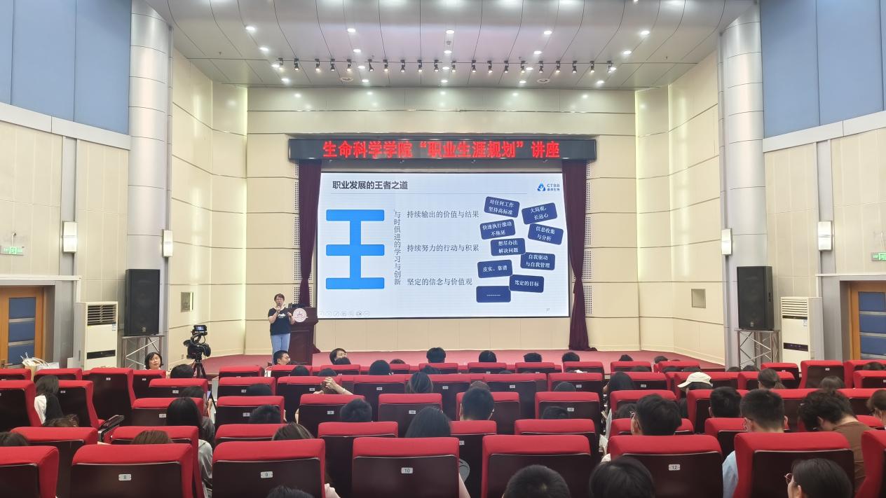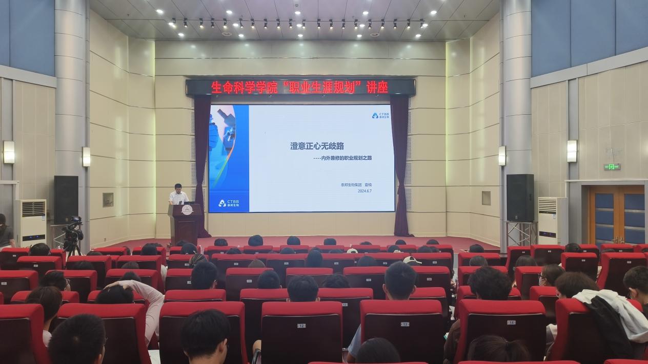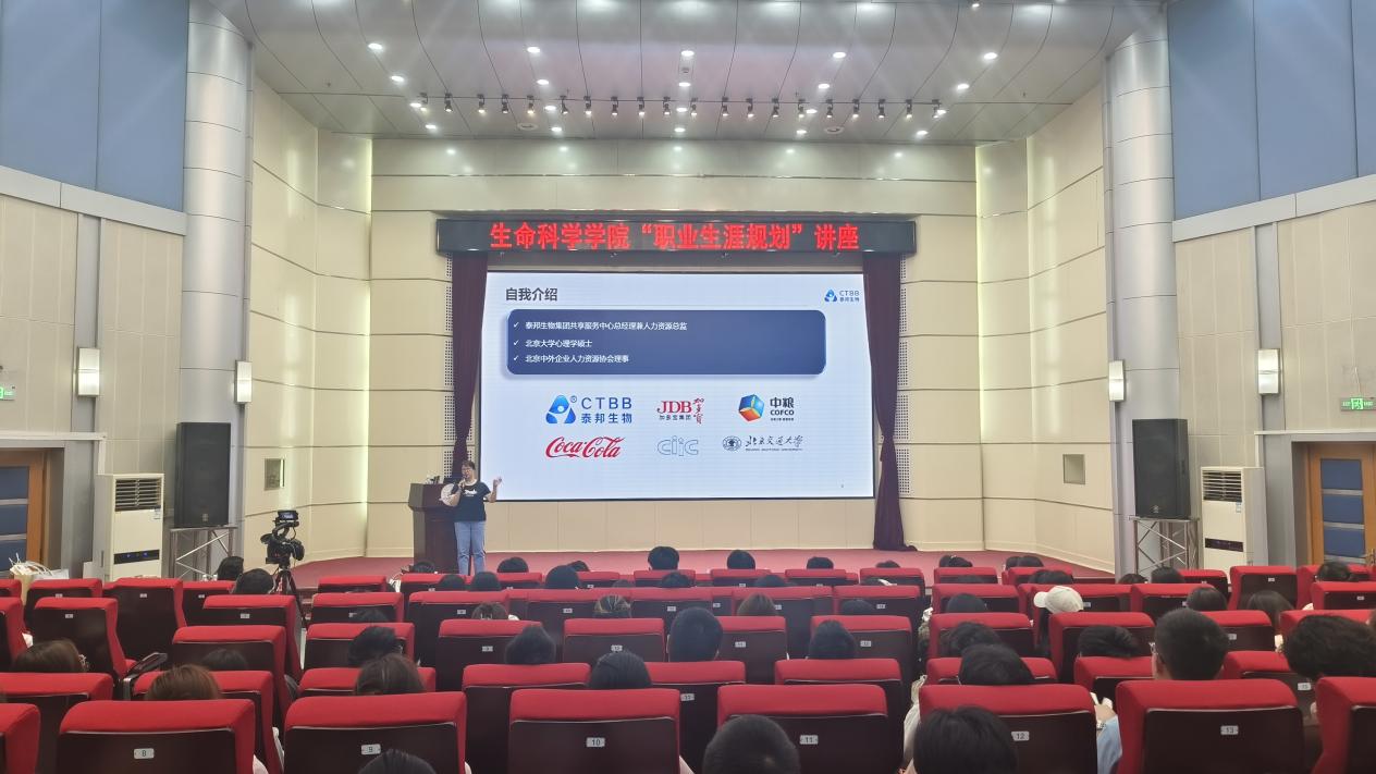 夏楠女士毕业于北京大学应用心理学硕士专业,现任泰邦生物集团HRD、北京中外企业人力资源协会理事。她首先介绍了泰邦生物集团的发展历程,随后以内外兼修的职业生涯成长和职业发展的“王”者之道为主题详细介绍。夏楠女士讲到,职业规划是对职业生涯乃至人生进行的系统计划,老员工怀揣梦想、富有激情,但缺乏自我认知和社会实践,举办此次报告会是想要指导同学们如何进行职业生涯规划,帮助同学们确定今后的学习和发展方向,最大化实现个人价值和社会价值。
