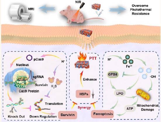 光热治疗因其能够在精准杀伤肿瘤细胞的同时尽量减少对正常组织的损伤,成为近年来备受关注的抗癌策略。然而,肿瘤细胞可通过上调热休克蛋白(HSPs)的表达来激活内源性防御机制,从而抵抗热应激带来的损伤,显著削弱光热治疗的治疗效果,成为限制其临床应用的主要障碍。因此,研发能够靶向抑制HSPs功能或降低其表达的新策略,成为提高光热治疗疗效的关键。