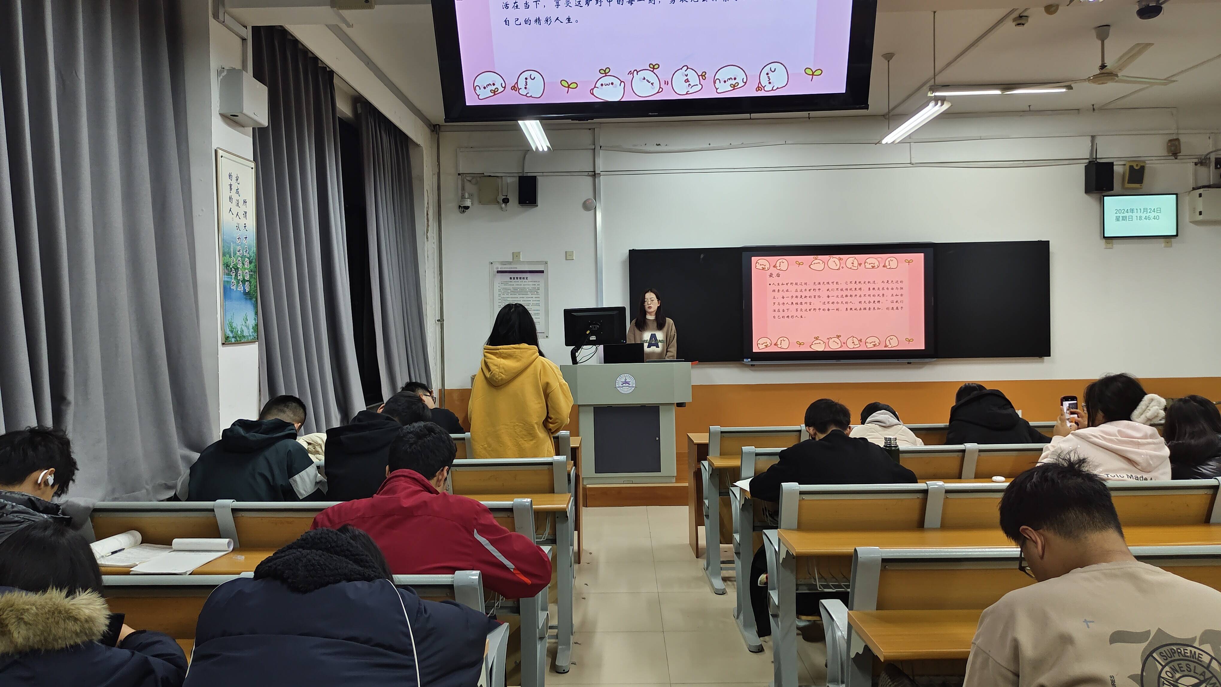 在答疑环节,同学们敞开心扉倾诉学业、家庭压力,演讲人们一一耐心剖析、给出实操性解压技巧,从正念冥想到制定学习小目标,为焦虑“降温”。