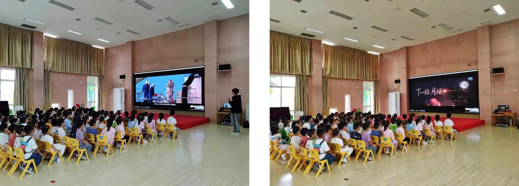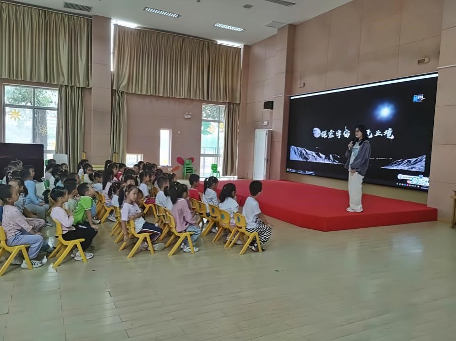 志愿者张传兰向小朋友们分享了 “嫦娥” 探月工程 “六战六捷” 的辉煌战绩,以及 2024 年 9 月 23 日习爷爷在人民大会堂接见参与探月工程的叔叔阿姨们的重大事件,并传达了习爷爷对航天事业的殷切期望。鼓励小朋友们努力学习,为国家的繁荣和发展贡献力量。